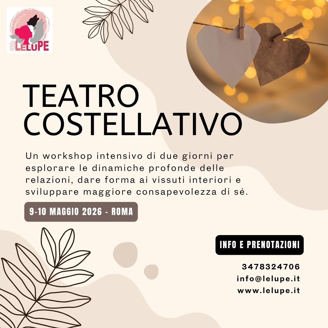 Questo workshop intensivo di due giorni è uno spazio di esplorazione profonda in cui il lavoro su di sé incontra la dimensione relazionale e sistemica. Attraverso il Teatro Costellativo, i partecipanti sono accompagnati a dare forma, corpo e voce ai vissuti interiori, portando alla luce dinamiche spesso invisibili che abitano le relazioni e influenzano il nostro modo di stare nel mondo. Il lavoro si sviluppa in un contesto accogliente e non giudicante, dove il gruppo diventa risorsa e specchio, permettendo a ciascuno di riconoscersi e trasformarsi.